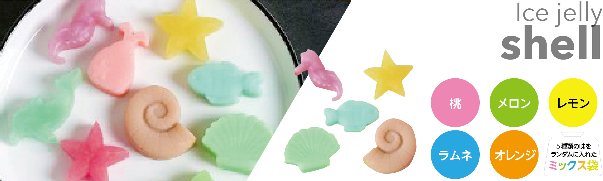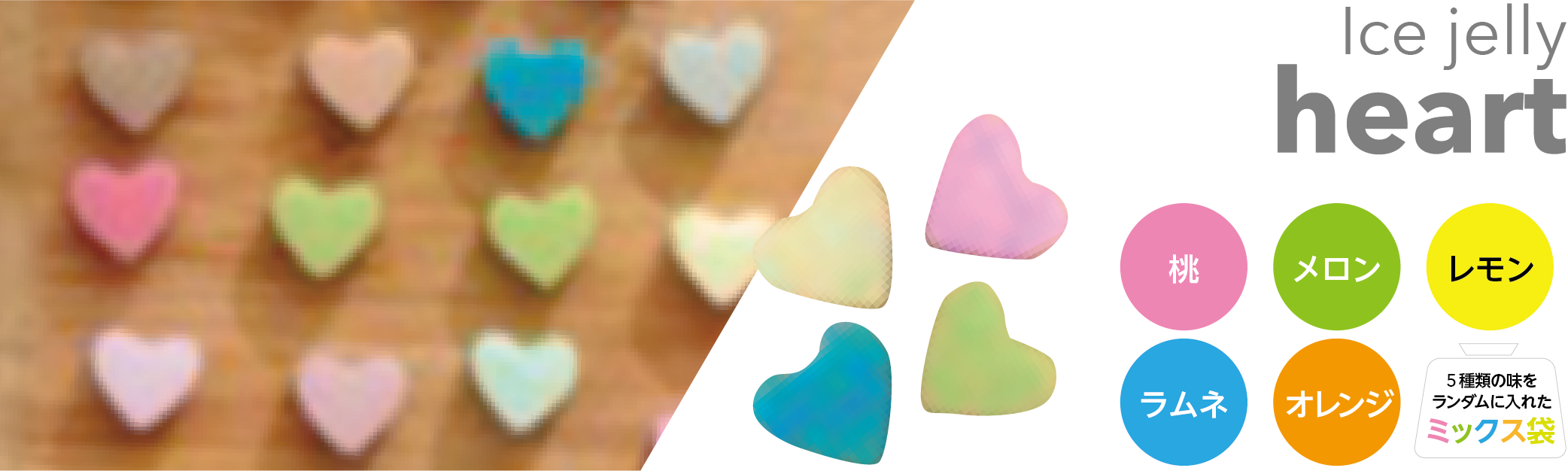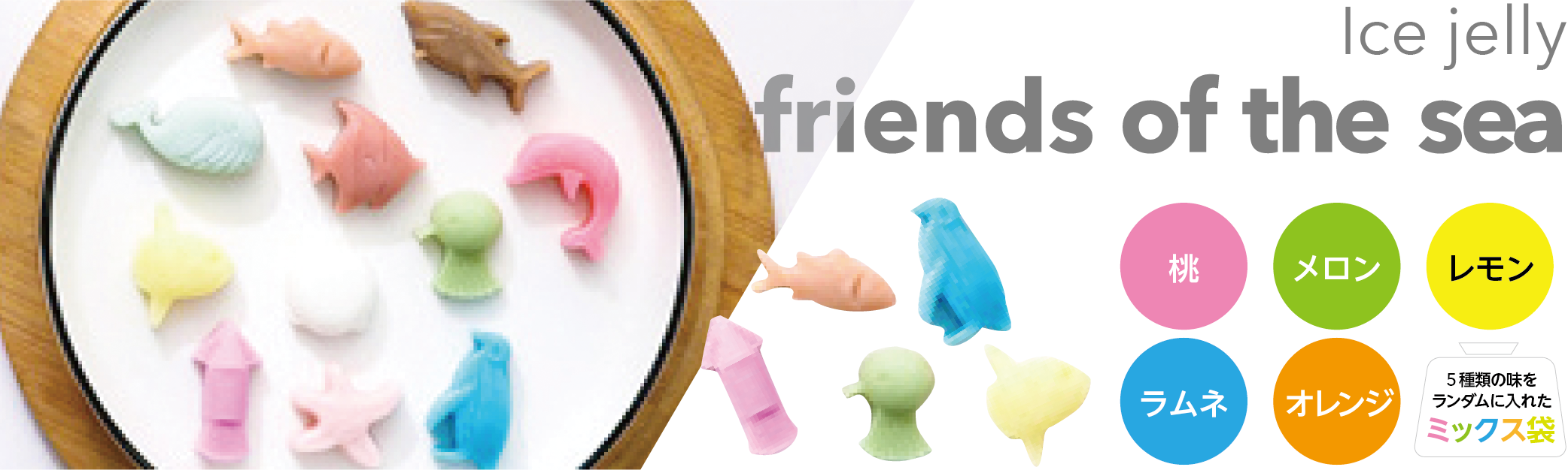 味は、桃・メロン・レモン・ラムネ・オレンジ・各味のミックスからお選びいただけます。