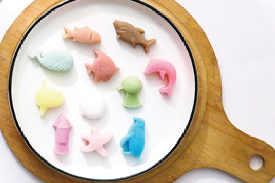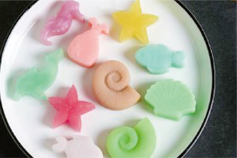 既存の商品に乗せるだけで、手軽に「見栄え、味変」が出来ます。また、商品付加価値UPにつながります。 「可愛い」&「美味しい」ゼリ-です。
