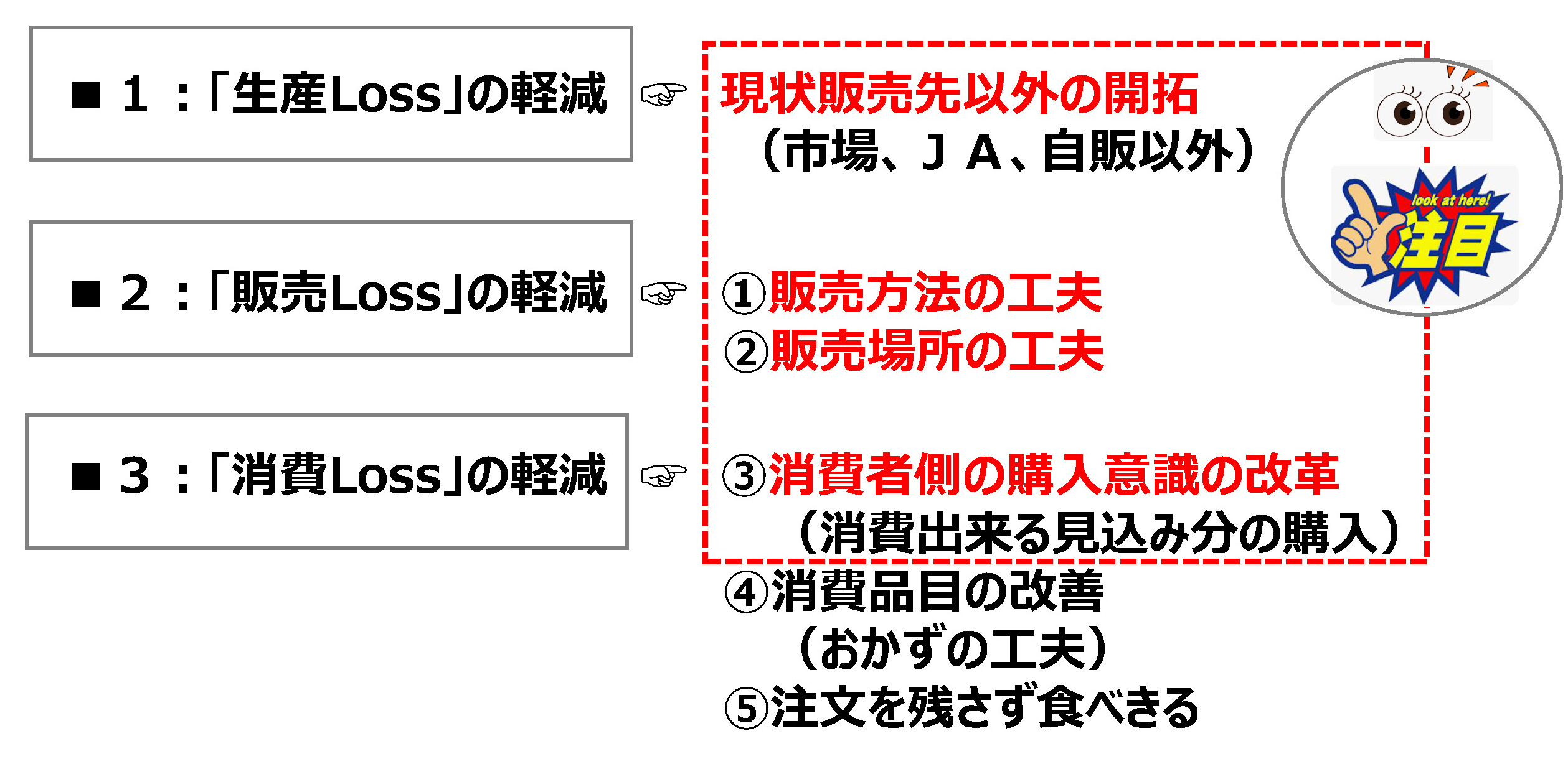 を抑制する。売り方を工夫して、全体